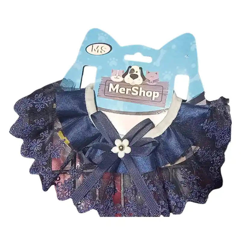 BIENVENIDOS A VERTMAK as pañoletas con encaje para mascotas son un accesorio elegante y funcional que puede añadir un toque de estilo a tu perro o gato. Aquí tienes una descripción general: Descripción de Pañoletas con Encaje para Mascotas Material: Generalmente están hechas de una mezcla de poliéster y algodón, lo que las hace suaves al tacto y cómodas para tu mascota. Diseño: Estas pañoletas suelen tener un diseño triangular con bordes de encaje, lo que les da un aspecto delicado y sofisticado. Tamaño: Vienen en varios tamaños para adaptarse a diferentes razas y tamaños de mascotas. Es importante medir el cuello de tu mascota y añadir unos centímetros para asegurar un ajuste cómodo. Cierre: Pueden tener diferentes tipos de cierre, como broches, velcro o simplemente se atan con un nudo. Colores y Estampados: Disponibles en una variedad de colores y estampados, desde diseños florales hasta patrones más modernos. Uso: Ideales para ocasiones especiales, sesiones de fotos o simplemente para el uso diario si quieres que tu mascota luzca con estilo. Beneficios Comodidad: El material suave asegura que tu mascota se sienta cómoda mientras lleva la pañoleta. Estilo: Añade un toque de elegancia y personalidad a tu mascota. Versatilidad: Perfectas para cualquier ocasión, desde paseos diarios hasta eventos especiales.