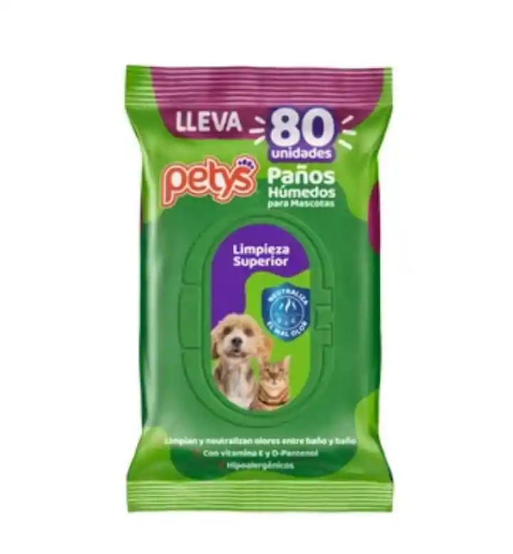 limpian y neutralizan olores de la mascota entre baño y baño, tiene una agradable fraganciaestan enriquecidos con vitamina E y D- Pantenol para proteger la piel y el pelo de la mascota. Tiene PH neutro, son hipoalergénicos y están aprobados por médicos veterinarios.