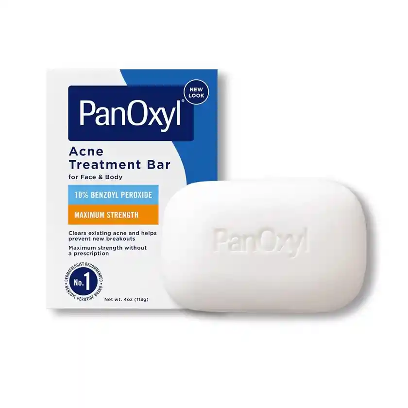 🧼 Jabón PanOxyl 10% Peróxido de Benzoilo – Tratamiento Antiacné de Máxima Fuerza PanOxyl Acne Treatment Bar es un jabón dermatológico de máxima potencia formulado con 10% de peróxido de benzoilo, la concentración más alta disponible sin fórmula médica. Diseñado para piel con acné moderado a severo, ayuda a eliminar bacterias causantes del acné, limpiar profundamente los poros y prevenir nuevos brotes. ✅ Beneficios principales Elimina hasta el 99.99% de las bacterias del acné (C. acnes). Ayuda a reducir granos, espinillas y brotes recurrentes. Limpieza profunda que desobstruye poros. Ideal para cara, espalda, pecho y cuerpo. Recomendado por dermatólogos en EE. UU. 🧪 Fórmula de alta eficacia 10% Peróxido de Benzoilo (Máxima fuerza OTC) Actúa rápidamente contra el acné existente y ayuda a prevenir futuros brotes. Libre de fragancias artificiales. 🧑⚕️ Modo de uso Humedece la piel. Aplica el jabón y masajea suavemente. Deja actuar de 1 a 2 minutos. Enjuaga bien y seca sin frotar. 👉 Usar 1 vez al día o según recomendación dermatológica. ⚠️ Advertencias Puede causar resequedad o descamación al inicio. Usar protector solar durante el día. Evitar contacto con ojos y labios. No recomendado para piel extremadamente sensible sin consulta médica. 📦 Presentación Barra de 113 g (4 oz) Uso prolongado para rostro y cuerpo