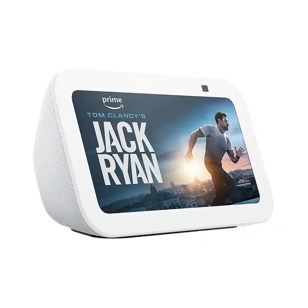 Alexa está lista para ayudarte: usa la voz para poner alarmas y temporizadores, ver tu calendario o las noticias, hacer videollamadas con la cámara de 2 MP y reproducir música y series en streaming con el altavoz inteligente con Alexa Amazon Echo Show 5 (3ª gen). Pon a Alexa en tu mesita de noche Disfruta del control por voz para configurar alarmas y temporizadores, poner una playlist que te ayude a relajarte, prepararte para empezar el día con una rutina que encienda tus luces compatibles o consultar de un vistazo tu calendario o la información del tiempo. Tamaño compacto, sonido potente Reproduce música, series, pódcast y más desde Amazon Music, Spotify, Prime Video y otros servicios de streaming y disfruta de un sonido con graves más potentes y voces más nítidas. Además, con la pantalla de 5,5", podrás ver series, visualizar los títulos de las canciones y más de un solo vistazo. Mantén tu casa confortable Controla dispositivos de Hogar digital compatibles como luces y termostatos incluso cuando no estás en casa. Ve aún más con la cámara integrada Echa un vistazo a lo que pasa en casa con la cámara integrada y asegúrate de que tu familia o tus mascotas están bien. Usa las llamadas de Drop In cuando estés fuera o conecta un videotimbre compatible para ver quién hay en la entrada desde tu Echo Show 5. Disfruta de tus fotos en pantalla Cuando no estés interactuando con el dispositivo, podrás usarlo como marco de fotos digital para exponer tus fotos favoritas con Amazon Photos. Además, los miembros Prime cuentan con acceso a espacio de almacenamiento ilimitado en la nube para sus fotos. Usa las videollamadas para conectar con los tuyos Llama a tus familiares y amigos que tengan la app Alexa o un dispositivo Echo con pantalla gracias a la cámara de 2 MP y envía comunicados a otros dispositivos compatibles en tu casa. Diseñado para proteger tu privacidad Fabricado con múltiples capas de control de la privacidad, incluido un botón que desconecta los micrófonos y la cámara electrónicamente. Fácil de configurar y usar Paso 1 - Enchufa el Echo Show 5 a la corriente. Paso 2 - Conecta el Echo Show 5 a la red. Paso 3 - Pídele a Alexa que te ponga música, te dé la previsión meteorológica, te lea las noticias y más. Todos los días son el Día de la Tierra No hace falta dedicarse a la ciencia medioambiental para tomar decisiones sostenibles. Hemos integrado la sostenibilidad en el diseño de este dispositivo. Así es como lo hemos hecho: Materiales: Tela de hilo de poliéster 100 % reciclado posconsumo y aluminio reciclado al 100 %. Embalaje del dispositivo: El 99 % del embalaje de este dispositivo está hecho a base de fibra de madera y procede de bosques gestionados responsablemente o materiales reciclados. Modo de bajo consumo Para reducir el uso de energía, el dispositivo entrará en modo de bajo consumo cuando esté inactivo. El modo de bajo consumo no está disponible en ciertas configuraciones del usuario. Para más información, consulta las restricciones del modo de bajo consumo. Ideal para tu mesita de noche El Echo Show 5 cuenta con una pantalla de 5,5” en la que podrás ver las noticias y consultar el tiempo de un vistazo, escuchar música o ver series en streaming y mucho más. Pon alarmas y temporizadores con la voz y personaliza tu rutina matutina para que se enciendan las luces gradualmente y te despiertes con tu canción favorita de alarma.