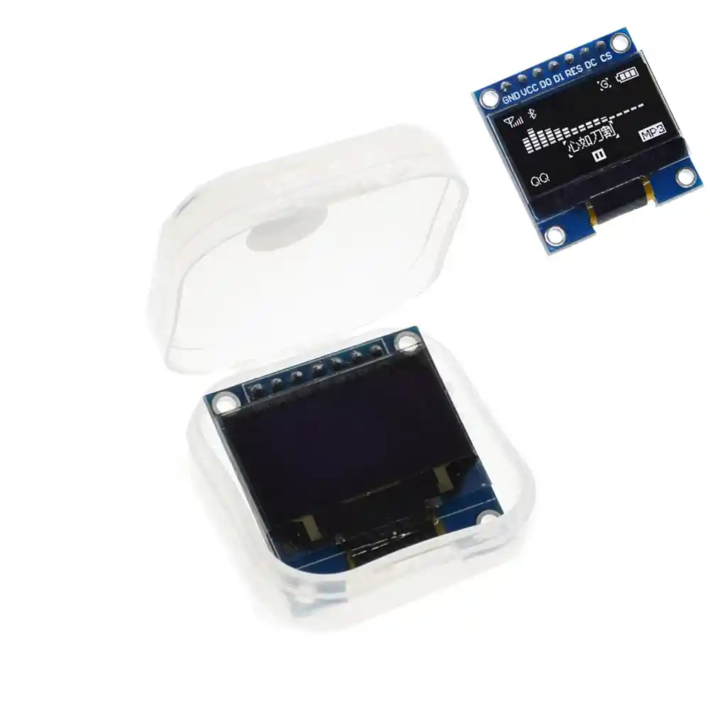 COLOR BLANCO Alta resolucion: 128X64 (LCD la misma resolucion, pero la pantalla OLED mas pixeles por unidad de area) Angulo de vision ancho estupendo: mas de 160 ° (el angulo de vision maximo visualiza una pantalla) 3, consumicion ultrabaja de la energia: exhibicion normal 0.06W (lejos debajo de la exhibicion de TFT) Gama amplia de la fuente: CC 3V-5V (sin ningunos cambios, directamente compatible con el sistema comun de la fuente de alimentacion 3.3V y 5V) Grado industrial: Temperatura de funcionamiento -30 C ~ 70 C 6, el tamaño ultra-pequeño: (longitud) 27.8MM * (W) los 27.3MM * (grueso) los 4.3MM Modos de funcionamiento multiples: 3-wire SPI, 4 SPI, IIC Con la señal de seleccion de chip CS, puede lograr multiples SPI o IIC dispositivo en el mismo trabajo de autobus Compatible con el nivel de E / S del chip de control de 3.3V y 5V (sin ningun conjunto, directamente compatible) 10, pantalla OLED, chip de unidad interna: SSD1306 Pin Descripcion: GND: Tierra de potencia VCC: fuente de alimentacion de 3,3 V o 5 V D0: Reloj CLK D1: Datos MOSI RST: Restablecer DC: datos / comando CS: señal de seleccion de chip Aplicaciones: 1, los relojes baratos 2, imagen de camara de coche inteligente se muestra en tiempo real 3, el aparato de gestion de baterias 4, IPC manejar 5, MP3 6, telefonos de la caracteristica 7, instrumento medico portatil El modulo con informacion: 1, C51 rutinas de visualizacion de un solo chip 2, rutinas de visualizacion STM32 3, Para las rutinas de la exhibicion del arduino LA COMPRA INCUYE: 1x DISPLAY OLED 0.96 PULGADAS 7 PIN 128X64 SPI SSD1306 BLANCA