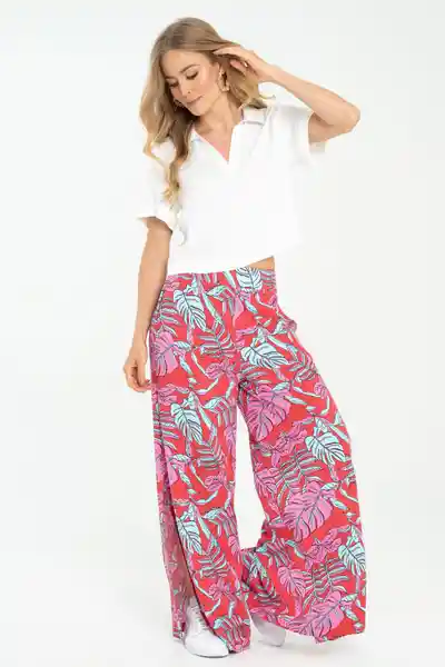 En Chalis Estampado Elástico en Pretina Bolsillos Silueta Palazzo Con Aberturas Laterales.