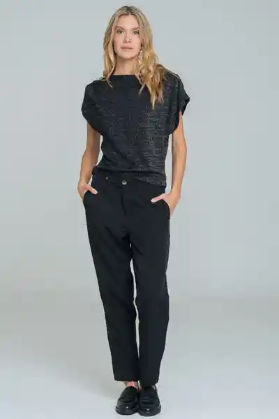 En Tejido Plano Fondo Entero Pretina Asimétrica Con Broches Pretina Enresortada Con Elástico de 5 cm en la Parte Trasera Bolsillos en Los Laterales Ruedo de 2 cmsbota Semi Ajustada.