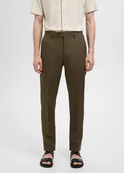 Bolsillo de Ribete Con Botón en la Parte Posterior Bolsillo Portamonedas Bolsillos Laterales Cierre Delantero de Doble Botonadura y Cremallera Colección Sastrería Detalle de Raya Planchada en la Parte Delantera y Trasera el Modelo Mide 190 cm y Lleva Una Talla 42 Estructura de Micro Cuadro Slim Fit Tejido 100% de Lino Trabillas Para Cinturón - 87015937_37.