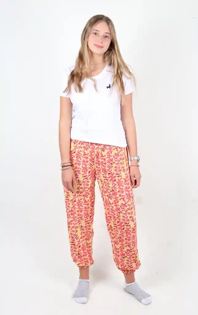 Pantalones perfectos para dormir y con mucho estilo para salir! Nuestros pantalones tienen bolsillos a ambos lados, elástico en la cintura y tobillos. Material y Cuidados Algodón / Poliester Lavar a mano en agua fría No usar blanqueador No usar secadora Planchar a temperatura baja