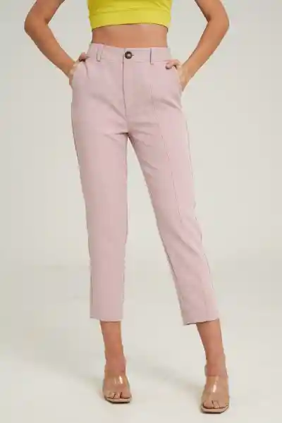 Mom Tiro Alto Tejido Plano Fondo Entero Bolsillos Diagonal Corte Frente Asentado 1/16 Pretina Con Botón Cierre y Elástico Posterior.