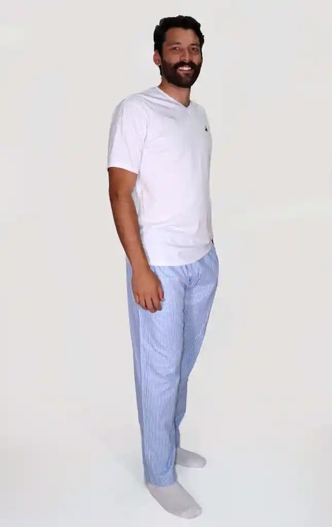 pantalón blanco cuadros azul claro