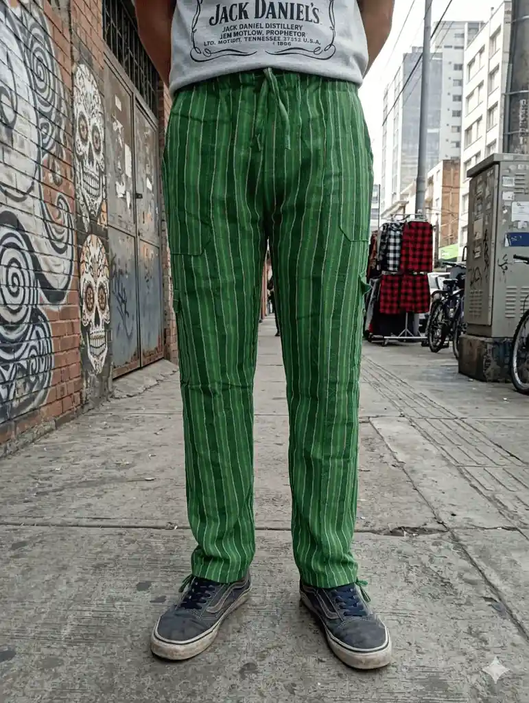 Pantalón Boho ecuatoriano en tonos de verdes frescos y ligeros. Todas las tallas S - M - L - XL