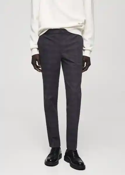 Cierre de Cremallera y Botón, Diseño de Cuadro Escocés, Dos Bolsillos de Ribete Con Botón en la Parte Posterior, Dos Bolsillos Laterales, el Modelo Mide 190 cm y Lleva Una Talla 42, Elástico en la Parte Posterior de la Cintura, Slim Fit, Tejido Mezcla de Algodón, Trabillas - 77057916_96.