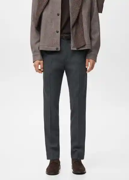 Cierre de Cremallera y Botón Detalle de Raya Planchada en la Parte Delantera y Trasera Dos Bolsillos Con Botón en la Parte Posterior Dos Bolsillos Laterales Franela de Algodón Suave Slim Fit Trabillas Para Cinturón - 27011198_96.