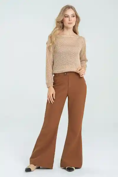 Bota Campana en Tafetán Fondo Entero Tiro Alto Con Pretina Botón y Cierre de Ajuste Bolsillo Parche en Posterior Ajusta en Cintura y Pierna.