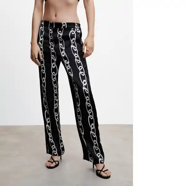 Cintura Con Goma Elástica Diseño Recto Dos Bolsillos Laterales Estampado de Cadenas Sin Cierre Tejido Fluido Tejido Satinado Tiro Medio - 47067138_99.