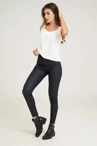 Negro Efecto Cuero Tiro Alto Cinco Bolsillos Super Strech.