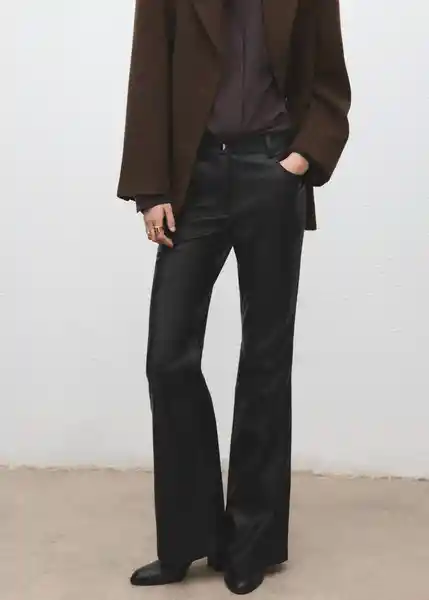 Cierre Delantero de Cremallera y Botón Cinco Bolsillos Diseño Largo Dos Bolsillos de Ribete en la Parte Posterior Efecto Piel Estilo Flare Forro Interior Tiro Medio Trabillas - 27031295_99.