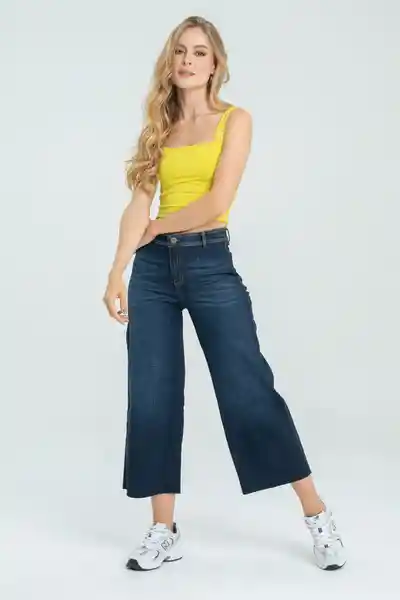 Culotte Stretch Tiro Alto Tono Oscuro Con Manualidad Bolsillo Parche en Posterior Ruedo al Corte.