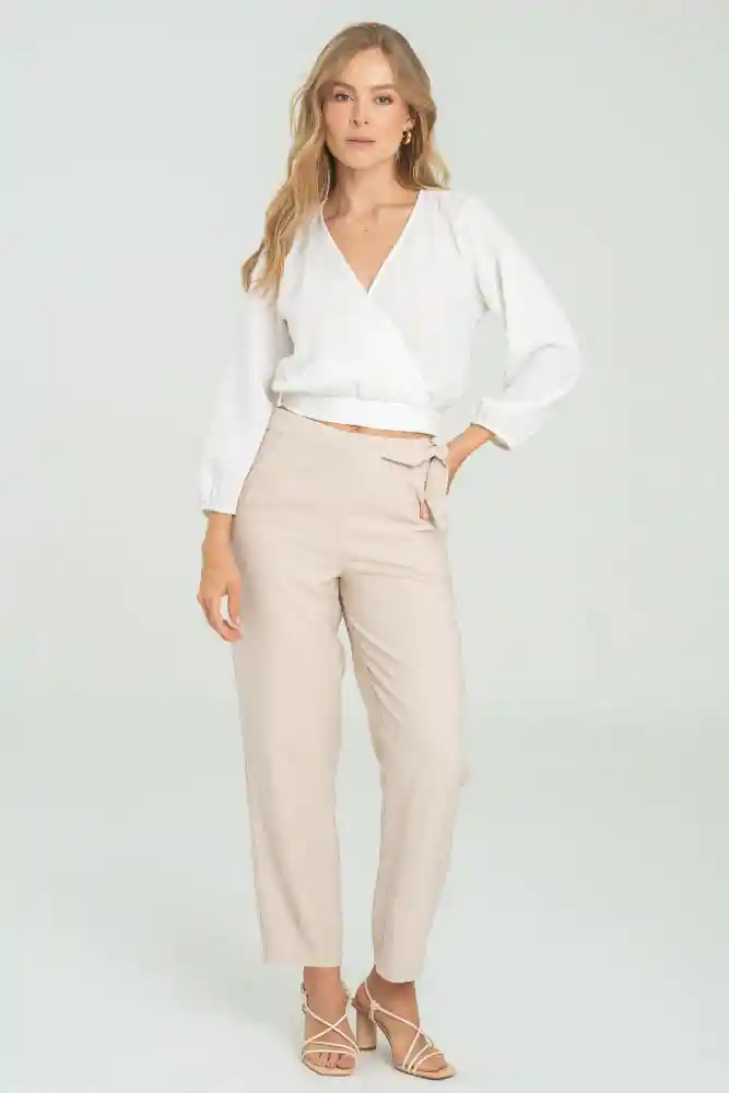 Tipo Harem en Tejido Plano Fondo Entero Nudo en Pretina Bolsillos Laterales Cierre Semi Invisible en Lateral Silueta Semi Ajustada.