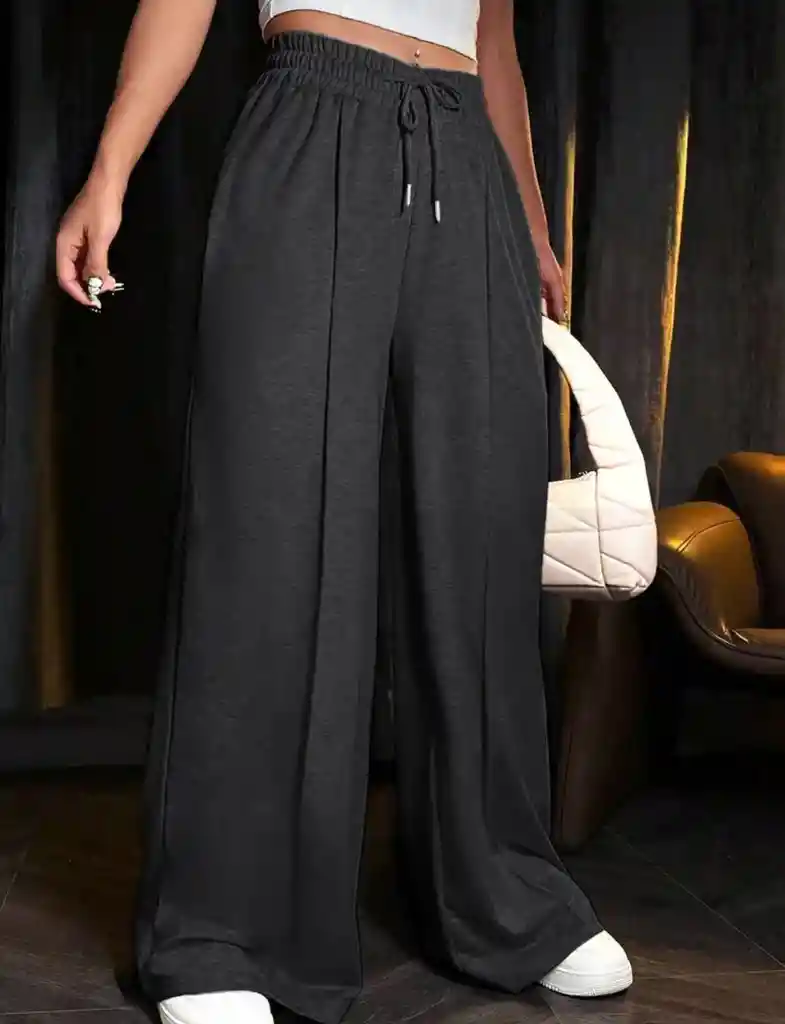 Pantalón de sudadera en poliéster grueso, color gris oscuro, bota ancha y talla M