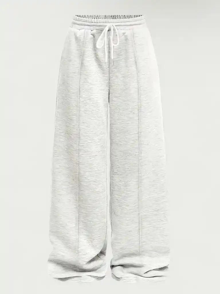 Pantalón de sudadera en poliéster grueso, color gris oscuro, bota ancha y talla M