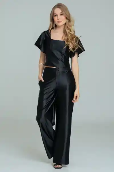 En Tejido Plano Fondo Entero Con Acabado Especial Talle Alto Pretina de 5 cm Con Botones Forrados de 24L Bolsillos en Los Laterales Pinzas Decorativas en Posterior Cierre de Nylón Tono a Tono Ruedos de 2 cm Silueta Amplia.
