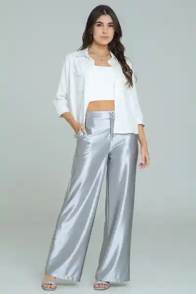 En Tejido Plano Fondo Entero Con Acabado Especial Talle Alto Pretina de 5 cm Con Botones Forrados de 24L Bolsillos en Los Laterales Pinzas Decorativas en Posterior Cierre de Nylón Tono a Tono Ruedos de 2 cm Silueta Amplia.