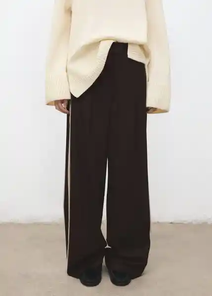 Cierre Delantero de Botón Gancho y Cremallera Ocultos Con Tapeta Detalle de Rayas en Contraste Diseño Largo Diseño Wide Leg Forro Interior Largo Largo Tiro Medio - 27021296_32.