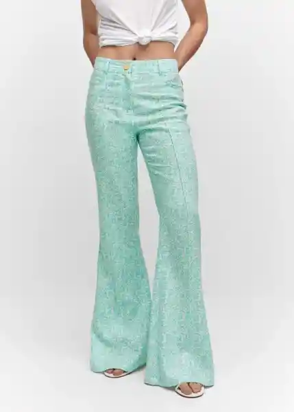Bolsillos Laterales Cierre de Cremallera y Botón Costuras Decorativas Diseño Acampanado Diseño Largo Estampado Floral Tejido Mezcla de Lino Tiro Medio Trabillas - 57062882_46.