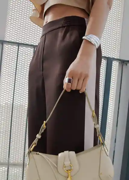 Cintura Con Goma Elástica Detalle de Raya en Contraste Diseño Largo Diseño Recto Dos Bolsillos Laterales Forro Interior Sin Cierre Tejido Satinado Tiro Medio - 17073330_66.