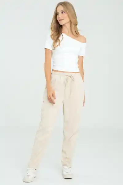 En Tela Durazno Pretina Elástica Con Sesgo Amarre Decorativo Bolsillos Laterales Silueta Amplia Tobillero.