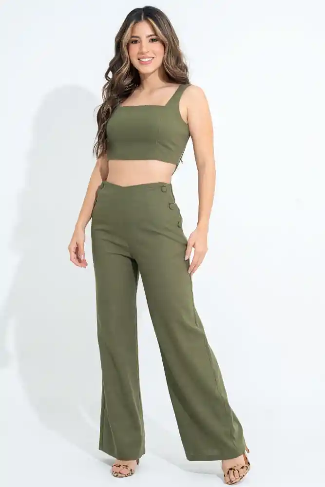 En Tejido Plano Tipo Lino Fondo Entero Talle Alto Con Pretina Incluida en la Parte Delantera Botonado Con Botones Forrados de 32L en la Parte Delantera Pretina de 6 cms en la Parte Trasera Pinzas y Riebete de 1 cms Bota Amplia Ruedo de 2 cms.