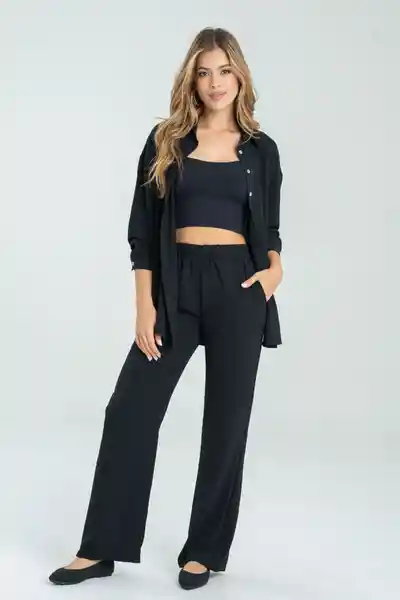 En Tejido Plano Con Textura Pretina Resortada Con Elástico de 4 cms Bolsillos en Los Laterales Talle Alto Bota Recta Silueta Semi Ajustada.