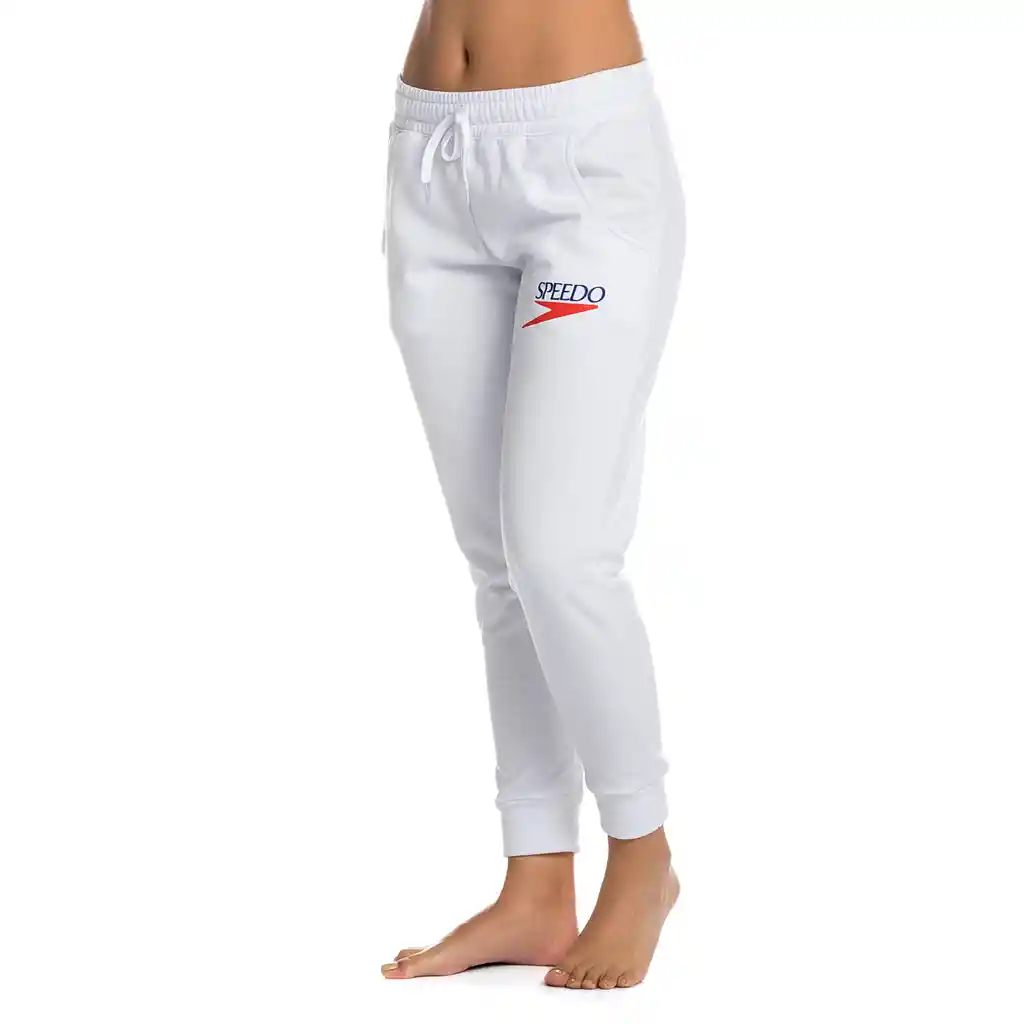 El Pantalón Jogger Vintage Logo Para Mujer Color Blanco, Tiene Un Diseño Aerodinámico Y Suave Al Tacto, Te Mantiene Cómoda En Todo Momento. Su Diseño Genera Una Sensación De Total Libertad La Hora De Entrenar. Tiene Un Cordón En La Cintura Para Un Ajuste Seguro, Su Diseño Incluye El Logo Speedo En La Parte Frontal Del Lado Izquierdo.