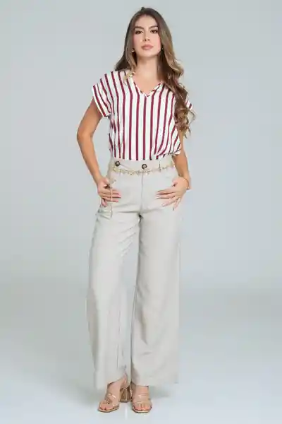 Bota Amplia en Tejido Plano Fondo Entero Pretina Con Botones 36L y un Solo Pasador Lisa en la Parte de Atrás Bolsillo Con Boca Redonda en la Parte Delantera Ruedo de 2.5 cm Silueta Semi Ajustada.