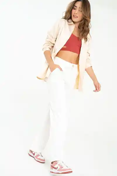 Bota Recta en Lino Fondo Entero Tiro Alto Bolsillo Parche en Frente y Posterior.