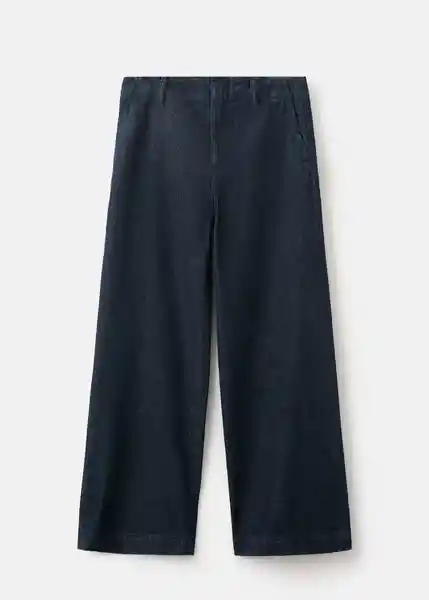 Cierre Oculto de Ganchos y Cremallera Diseño Largo Diseño Wide Leg Dos Bolsillos Laterales Rinse Wash Tejido de Algodón Estilo Tejano Vaquero Tiro Medio Trabillas - 27081344_Ts.