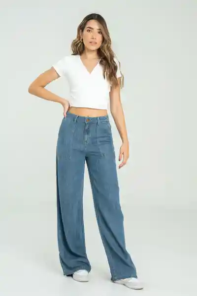 En Lyocell Tiro Alto Tono Medio Bolsillos Parche en Frente y Posterior Botón y Cierre en Frente Bota Recta.