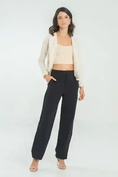 En Tafetán Tiro Alto Ajusta Con Gancho y Cierre Bolsillos Laterales y de Ribete Decorativo en Posterior Bota Recta.