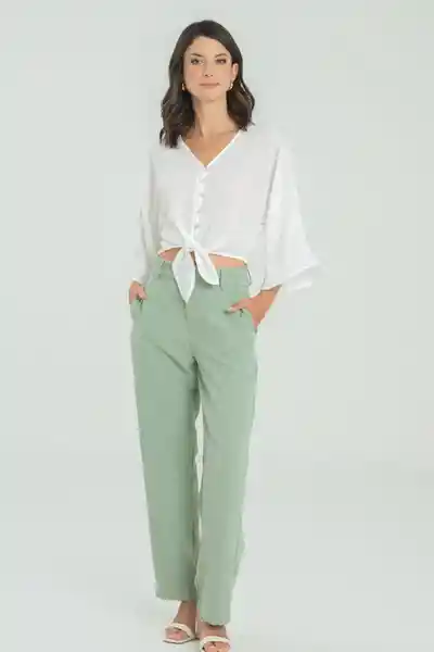 En Tafetán Tiro Alto Ajusta Con Gancho y Cierre Bolsillos Laterales y de Ribete Decorativo en Posterior Bota Recta.