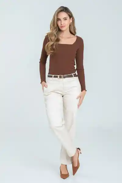 En Dril Pique Tiro Medio Ajusta Con Botón y Cierre Bolsillos Laterales y de Parche en Posterior Bota Ajustada Silueta Mom.