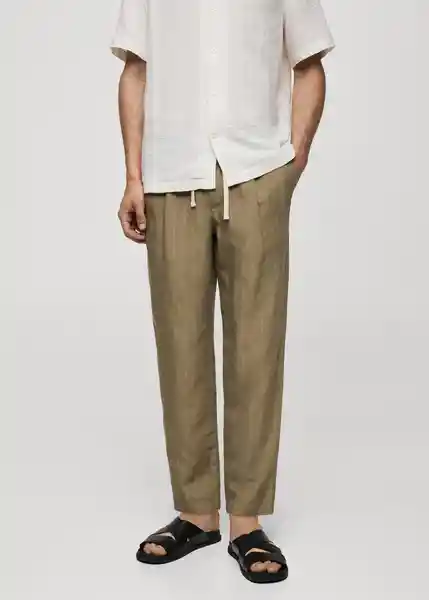 Cierre Delantero de Cremallera y Botón, Cintura Elástica Con Cordón Ajustable, Detalle de Pinzas Delanteras, Dos Bolsillos de Ribete Con Botón en la Parte Posterior, Dos Bolsillos Delanteros, el Modelo Mide 187 cm y Lleva Una Talla 42, Estampado de Rayas, Tejido 100% de Lino, Trabillas Para Cinturón - 77030566_37.