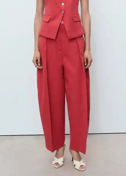 Cierre Oculto de Botón Gancho y Cremallera Detalle de Pinzas Diseño Balloon Dos Bolsillos de Ribete en la Parte Posterior Dos Bolsillos Laterales el Color Rojo es Exclusivo Online Estilo Traje Forro Interior 100% Algodón Tejido Mezcla de Algodón y Lino Tiro Medio Total Look - 17031206_75.