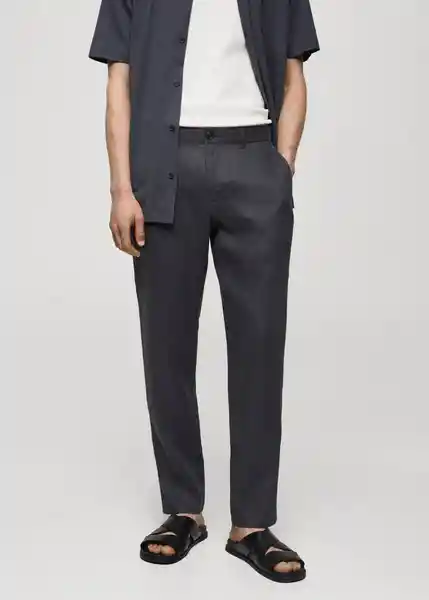 Bolsillo Portamonedas a la Altura de la Cadera, Cierre Delantero de Doble Botonadura y Cremallera, Dos Bolsillos de Ribete Con Botón en la Parte Posterior, Dos Bolsillos Delanteros, el Modelo Mide 187 cm y Lleva Una Talla 42, Slim Fit, Tejido 100% de Lino, Tiro Medio, Trabillas Para Cinturón - 77050250_57.