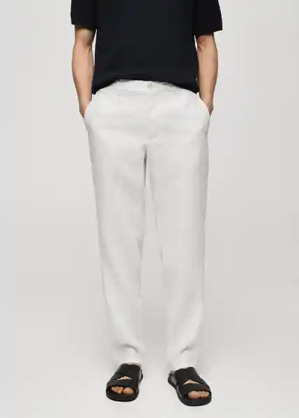 Bolsillo Portamonedas a la Altura de la Cadera, Cierre Delantero de Doble Botonadura y Cremallera, Dos Bolsillos de Ribete Con Botón en la Parte Posterior, Dos Bolsillos Delanteros, el Modelo Mide 187 cm y Lleva Una Talla 42, Slim Fit, Tejido 100% de Lino, Tiro Medio, Trabillas Para Cinturón - 77050250_01.