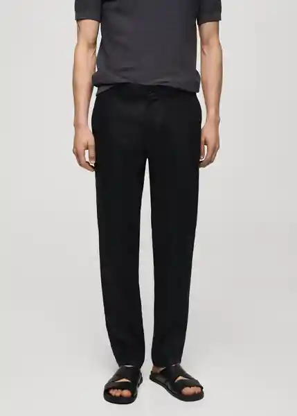 Bolsillo Portamonedas a la Altura de la Cadera, Cierre Delantero de Doble Botonadura y Cremallera, Dos Bolsillos de Ribete Con Botón en la Parte Posterior, Dos Bolsillos Delanteros, el Modelo Mide 187 cm y Lleva Una Talla 42, Slim Fit, Tejido 100% de Lino, Tiro Medio, Trabillas Para Cinturón - 77050250_99.