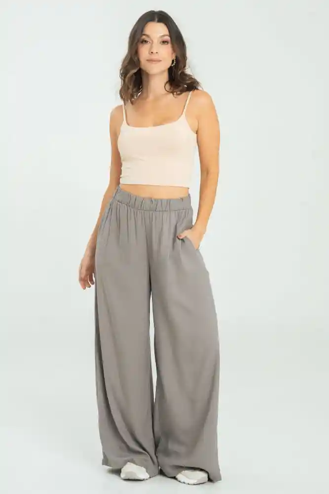 En Chalis Fondo Entero Elástico en Pretina Bolsillos Laterales Tiro Alto Bota Ancha.
