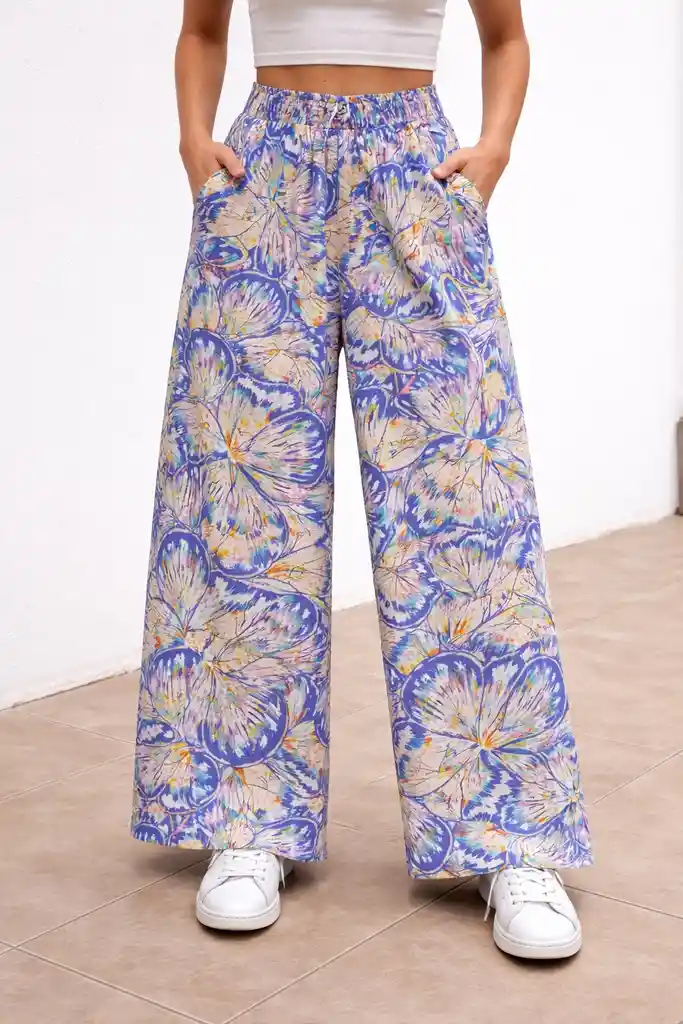 Pantalón Palazzo Cintura Resortada , Estampado Talla UNICA