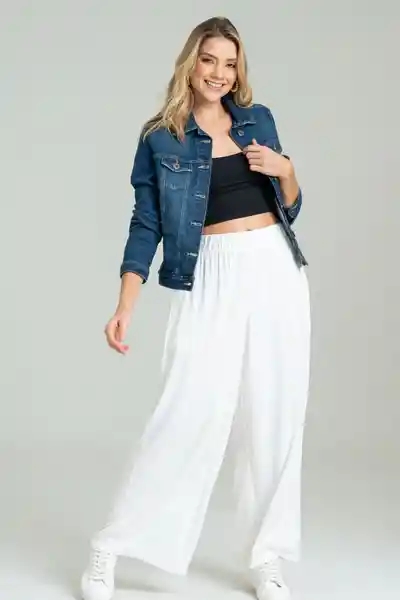 En Chalis Fondo Entero Elástico en Pretina Bolsillos Laterales Tiro Alto Bota Ancha.