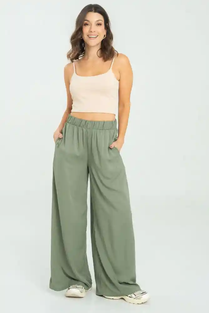 En Chalis Fondo Entero Elástico en Pretina Bolsillos Laterales Tiro Alto Bota Ancha.