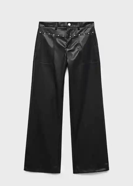 Cierre de Botón y Cremallera Detalle de Tachuelas Diseño Straight Fit Dos Bolsillos Laterales Tejido de Polipiel Tiro Cintura Low Waist Trabillas Para Cinturón - 17074778_99.