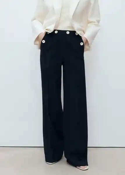 Bolsillos Laterales Cierre Delantero de Botón Gancho y Cremallera Ocultos Con Tapeta Detalle de Botones en Contraste en la Cintura Diseño Largo Diseño Recto Dos Bolsillos de Ribete en la Parte Posterior Tiro Medio - 87047196_56.