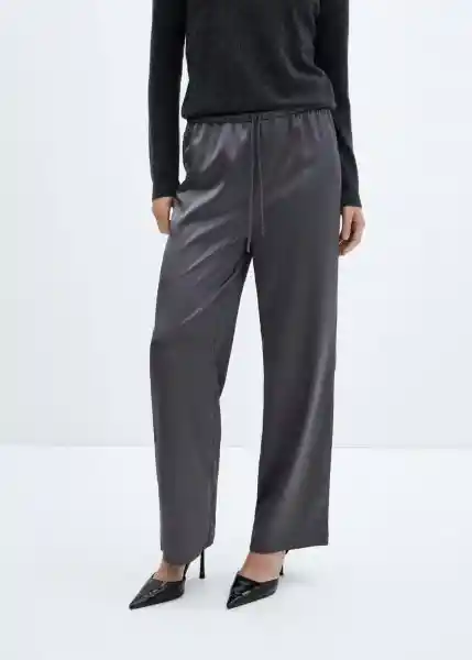 Caña Ancha Cintura Elástica Con Cierre de Lazo Diseño Largo Efecto Satinado Looks de Oficina Tejido Fluido Tiro Medio - 57085148_92.
